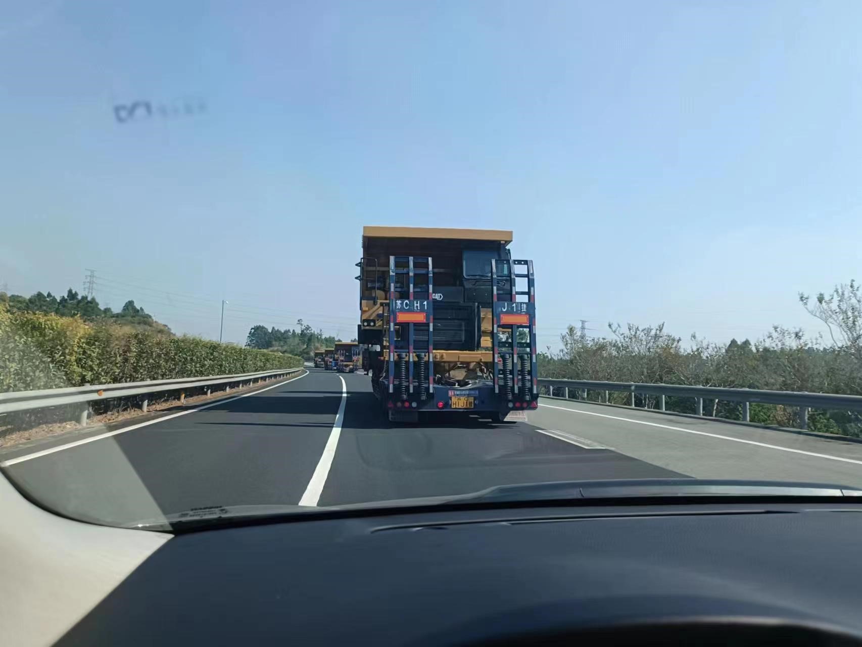 一批次发运7台773E矿卡,超限设备运输,押运车全程保障;目的地区域山路多,道路崎岖,地形复杂;排除万难,保证设备安全到达并如期交付。